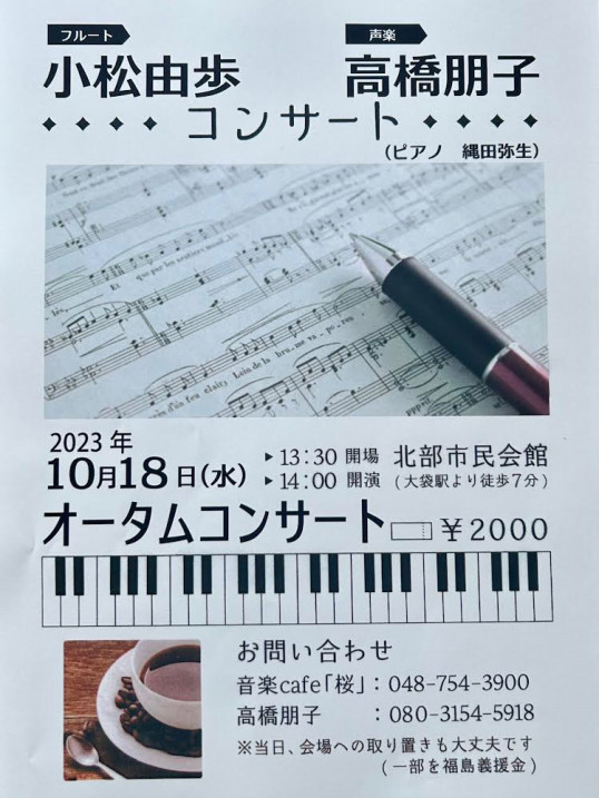 いつもありがとうございます。今日のランチコンサートも盛況ありがとうございました😭😭入院されてたお客様が二人、退院されてランチコンサートに来てくださいました😊❤😭嬉しかったです😭退院おめでとうございます!ランチコンサートも楽しみにされていたので、本当に嬉しかったです😊今日もありがとうございました❤今日は、フルート小松由歩、関根ほのか、ソプラノ朋子でランチコンサート出来ました😊❤フルート小松由歩とのコンサートも是非、皆様、お越しくださいね❤とにかくフルート小松のソロが素晴らしい🌸🌸